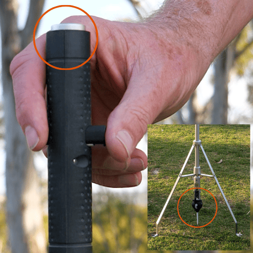 Close the tripod legs by pushing the leg support bracket away from the ball cage, then squeeze the legs in towards the cage.