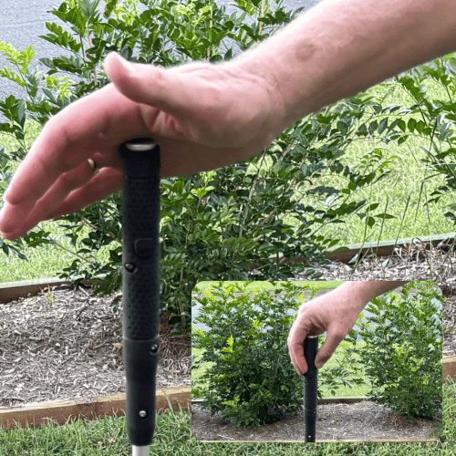 Place your hand on the top of the handle and push down on the handle. This will push the tee into the ground. If the ground is hard, hold onto the handle while you push down.
