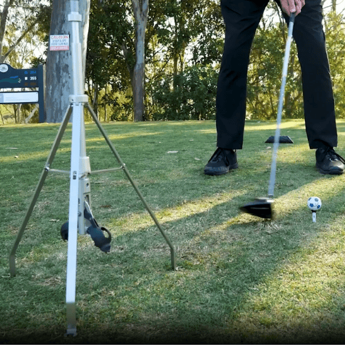 After the ball has been hit the tee can be picked up using the slot in any one of the tripod legs if the tee is still in the ground. If the tee is lying on the ground you can slide the foot at the end of the leg, under the middle of the tee, and lift it up.